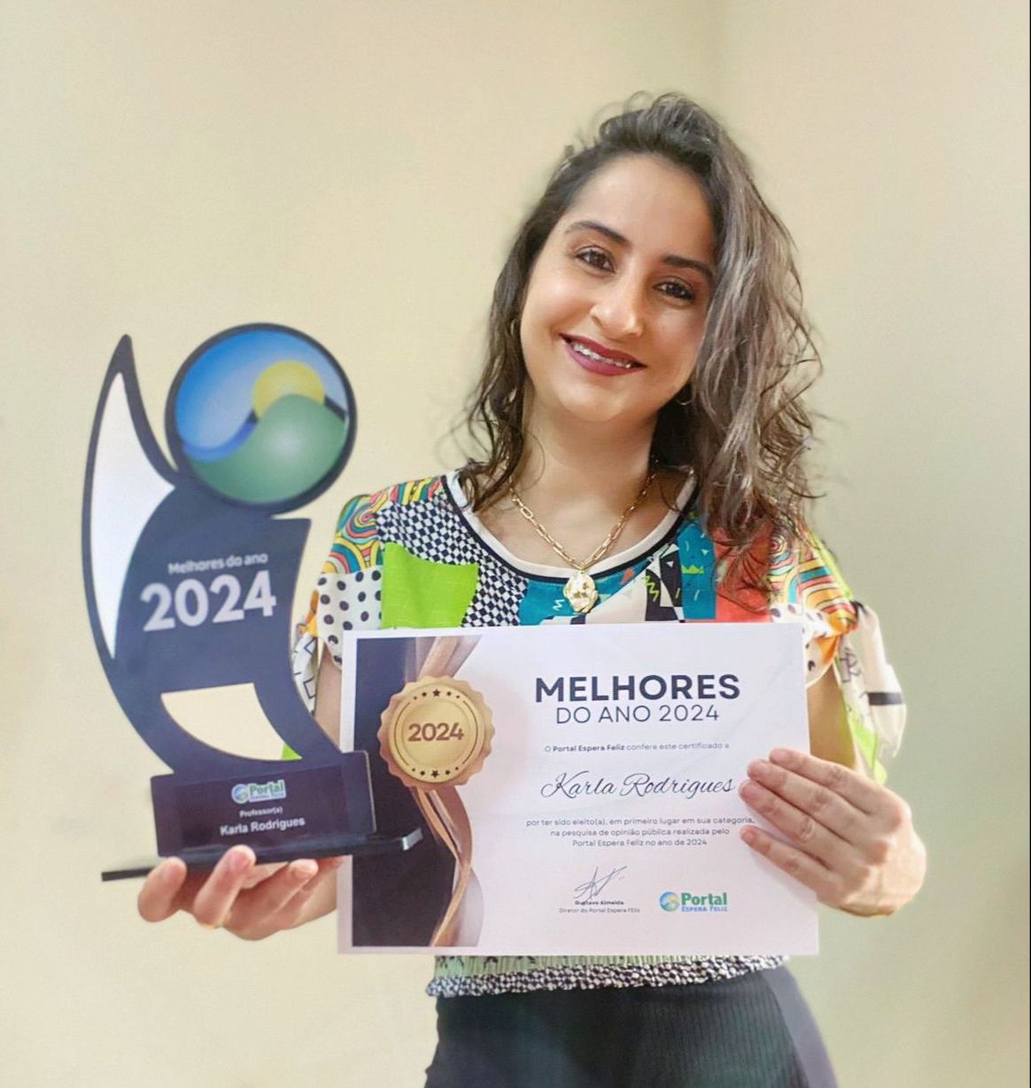 ESPERA FELIZ (MG) – Karla Rodrigues foi eleita a melhor professora no ano de 2024 em Espera Feliz. Karla foi a primeira colocada na pesquisa de opinião pública realizada entre os dias 09/09 e 22/09 pelo Portal EF.