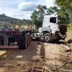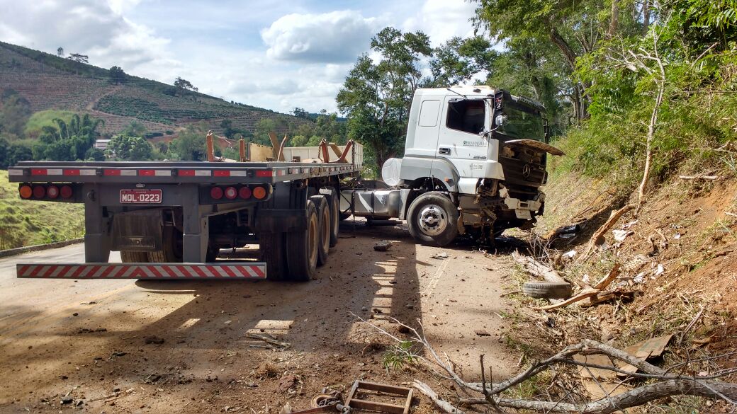 Uma carreta, com placas de Castelo – ES, que transportava uma pedra sofreu um acidente no KM 01 da BR 482, próximo ao posto da Polícia Rodoviária, na divisa entre Espera Feliz e Dores do Rio Preto.