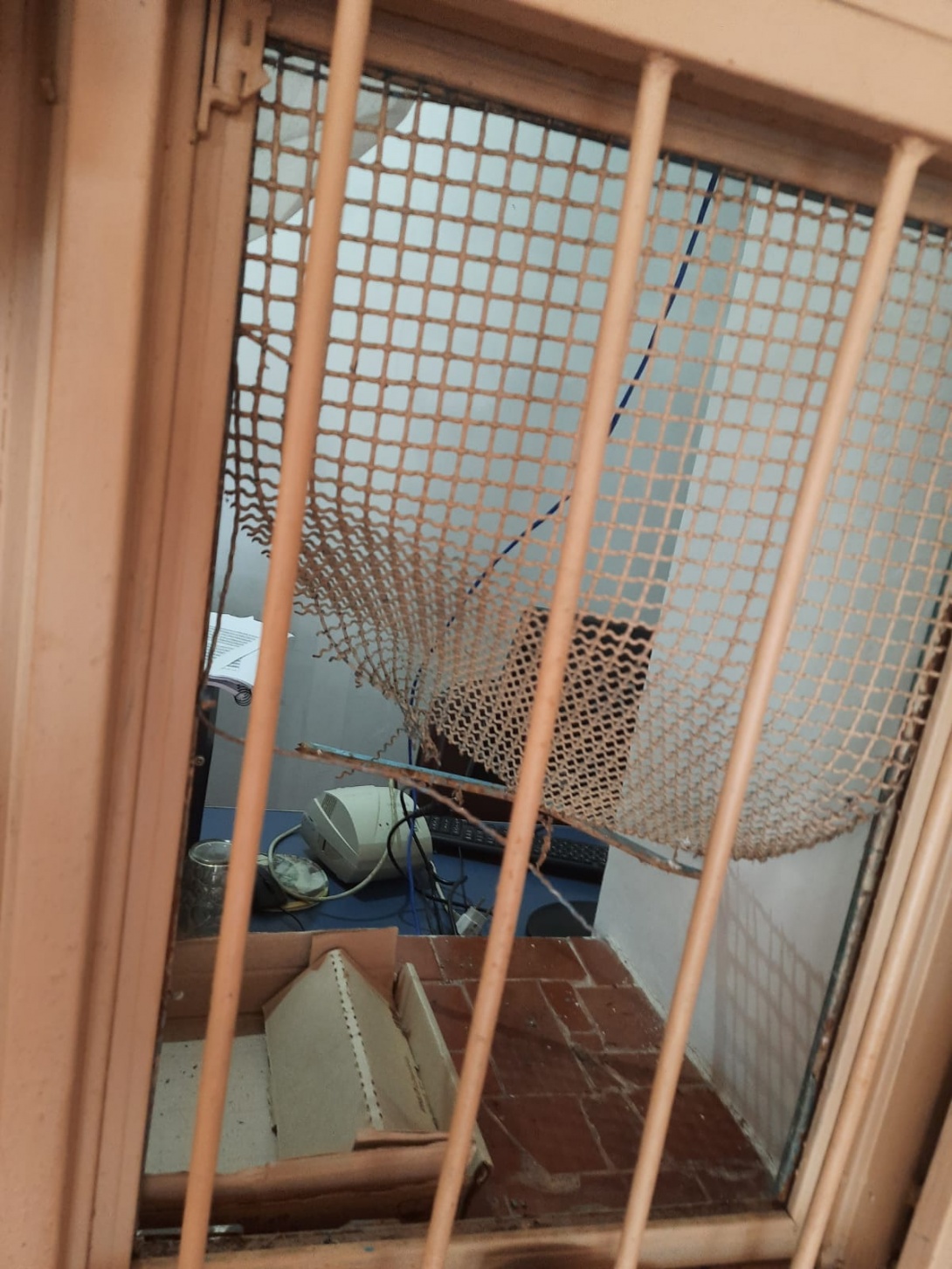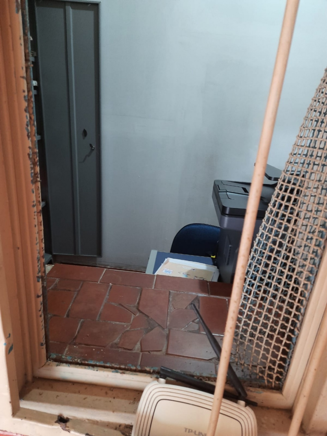 O ladrão causou vários estragos no local, quebrando portas e janelas. Além dos danos, ele levou um forno de micro-ondas, cabos de informática, roteador e um monitor.