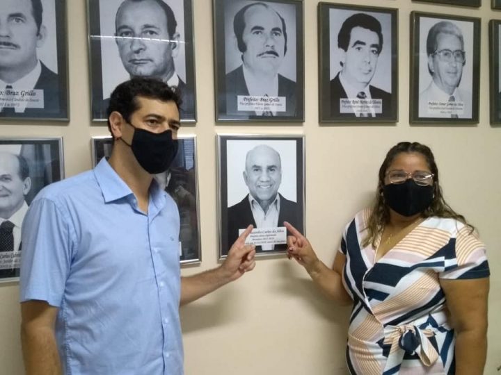 A foto traz a inscrição “Prefeito eleito-diplomado / Mandato 2021-2024 / Falecido em 31/12/2020, antes de sua posse”.