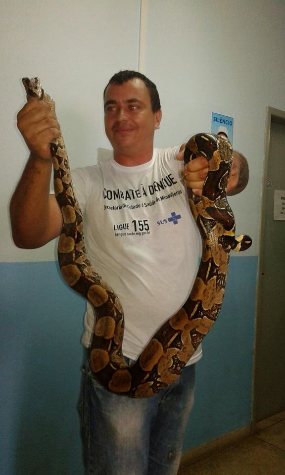Nesta segunda-feira (23), uma jiboia foi encontrada no PSF do Niterói na cidade de Tombos.