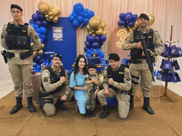 Divino(MG) – A Polícia Militar na cidade de Divino foi convidada pelos pais Eduardo e Alana, a participar do aniversário de 03 anos do pequeno Pedro, na cidade de Divino. Os pais relataram que a criança tinham o sonho de ter um aniversário com a presença dos policiais militares, que atendendo prontamente o pedido, deslocaram até o local do aniversário, onde puderam confraternizar com o pequeno aniversariante, que vestia uma fardinha da PMMG.