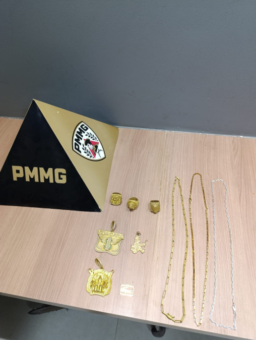 Com os suspeitos, foram encontrados os materiais furtados, sendo três cordões, três anéis e quatro pingentes.